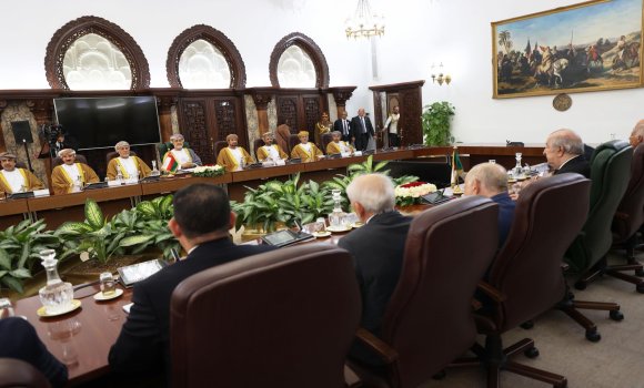 توسعت المحادثات التي أجراها رئيس الجمهورية, السيد عبد المجيد تبون, اليوم الاثنين بمقر رئاسة الجمهورية, مع جلالة سلطان عمان, هيثم بن طارق, لتشمل أعضاء وفدي البلدين.