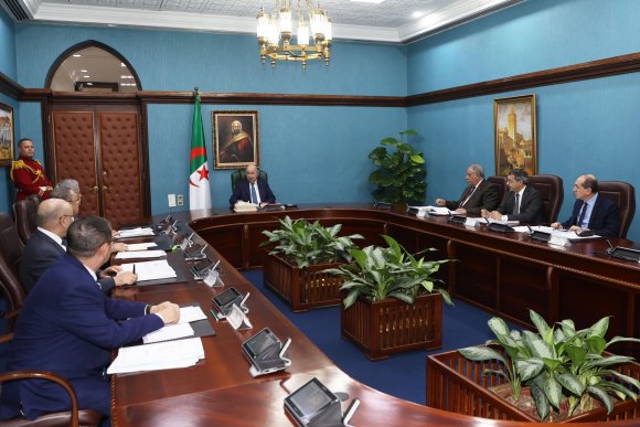 وجاء في البيان: “رئيس الجمهورية السيد عبد المجيد تبون يترأس اجتماع عمل تقييمي تناول حصيلة عمليات التصدير للمواد والمنتجات الجزائرية والإجراءات المتصلة بها”.